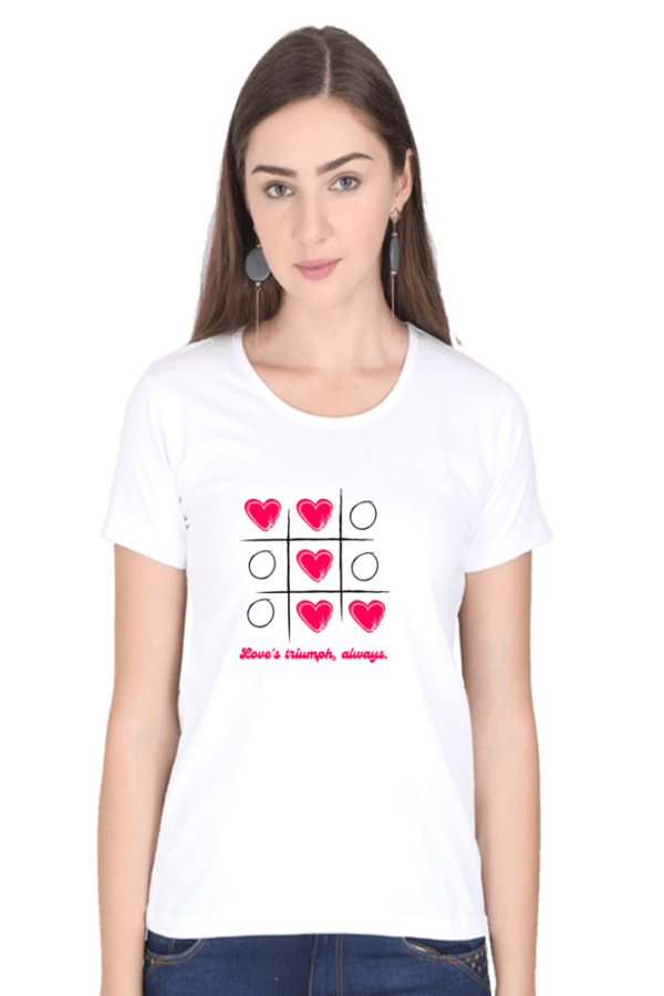 A soft, cotton women’s T-shirt with trendy prints, offering casual style and comfort.